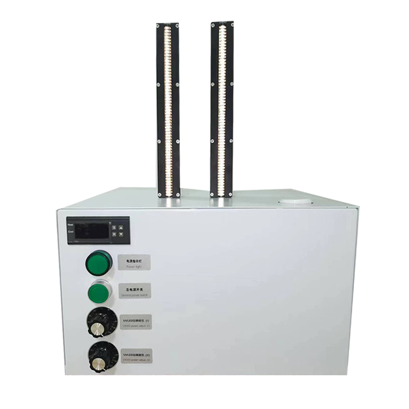 采用高功率LED灯珠,发射出365/385/395/405nm单波段紫外光源,不含红外线波长,被照射基材表面温度上升不超过5℃,对基材表面无热辐射伤害,适合热敏材质表面干燥;